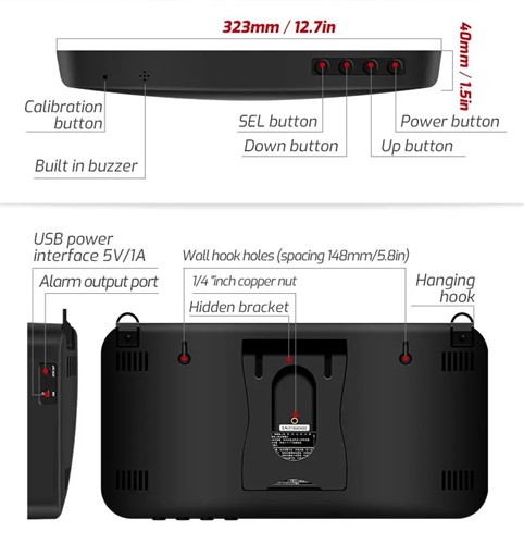 Instruktionsmanual, upphängningskrok x 2, skruv x 2, USB-datakabel |