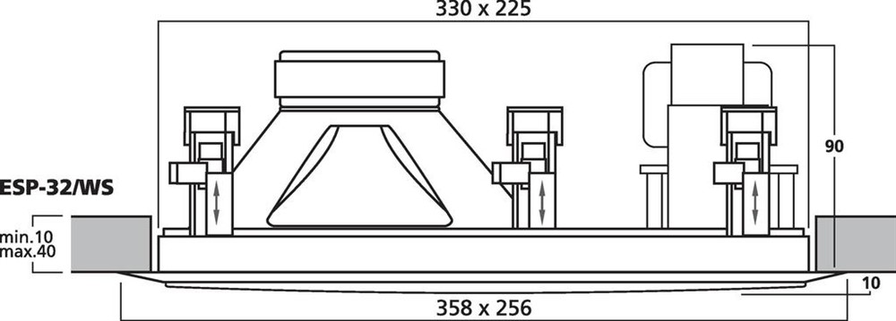 • 100V line technique, 2-way version with dome tweeter (movable at ESP-22/WS and ESP-32/WS)