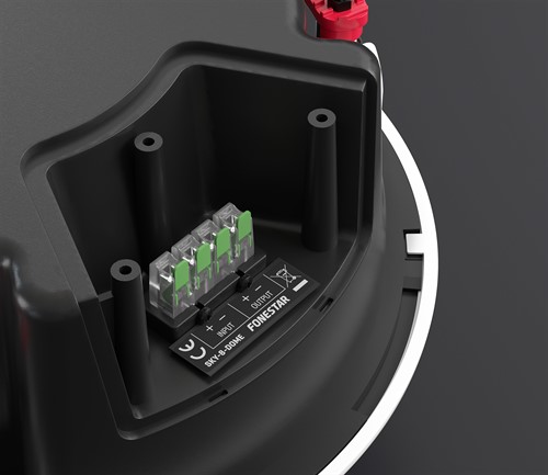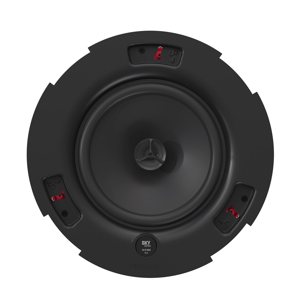 Låg ohm, 100 V linjetransformator takhögtalare Den banbrytande SKY-serien av takhögtalare är rika på detaljer som gör dem speciella. Gallret är den enda synliga delen av högtalaren en gång installerad i taket, så vi har designat den för att ha minimal visuell påverkan. Ramlös och låg profil. Den är gjord av aluminium och pulverlackerad för hög motstånd. Inga rostfläckar kommer att uppstå och det kommer att bevara sitt ursprungliga utseende. Den kan anpassas av ta bort den avtagbara logotypen och den kan målas. Kabelanslutningen är gjord med innovativa snabbkopplingsterminaler, som erbjuder en omedelbar anslutning med en säkert förankringssystem och maximal ledningsförmåga. Takhögtalaren har ett antifallsystem för att underlätta installationen, vilket gör att högtalaren kan placeras innan den slutliga installationen med takfästena. Dessutom har den en krok för att fästa högtalaren på en säkerhetskabel. Takfästet är mycket stabilt med tre fästen och ett skruvjusteringssystem. Installation är snabbt och enkelt och ger ett stadigt och säkert grepp. Huvudkomponenten för ljuduppspelning är den koaxiala högtalaren, med ett kraftigt polypropenmembran och en vridbar diskanthögtalare som kan justeras för att förbättra lyssningsupplevelsen. Den har en bred frekvenrespons, med en optimal balans mellan låga och höga frekvenser. Kupolens bakstycke har en reducerad höjd som gör att högtalaren kan installeras i tak där det finns begränsad plats. Ger skydd i fuktiga och dammiga miljöer. Högtalaren och domehöljet har ställts in ger ett fylligt lågfrekvent ljud, unikt i denna klass av högtalare. Högtalaren har ett IP-65 skydd mot damm och vatten. Högtalaren är resistent mot stänk från alla håll som inte påverkar högtalarens prestanda.