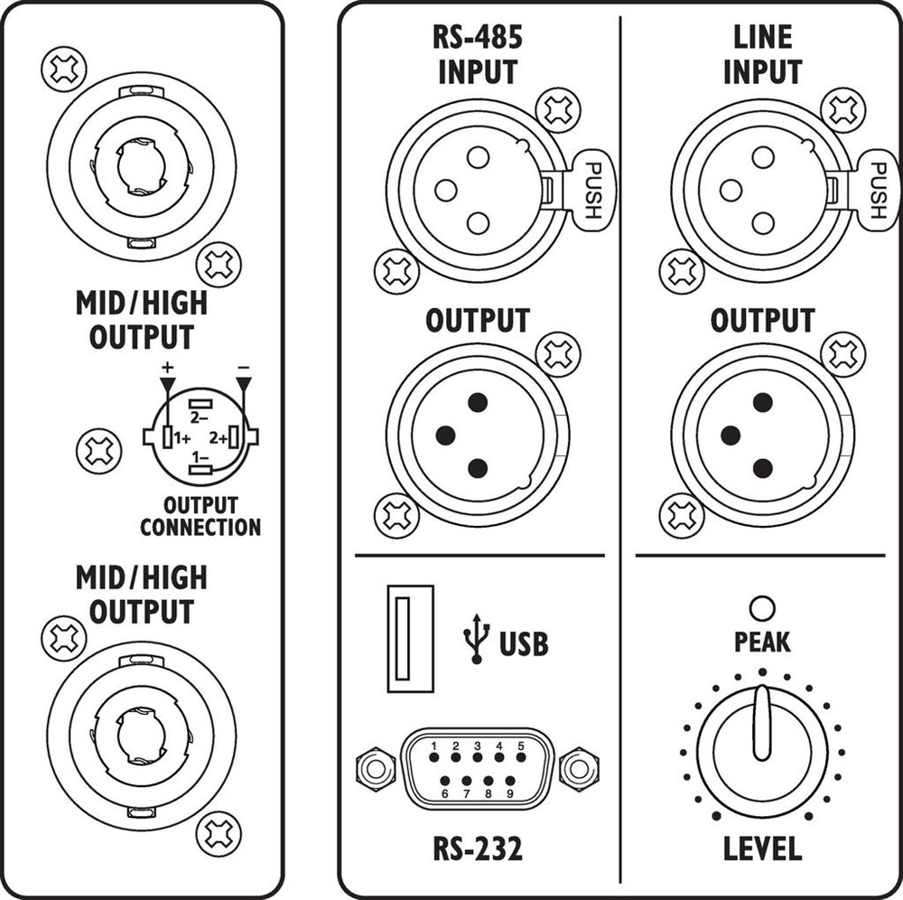 Speaker (at the top)NEUTRIK SPEAKON par. out