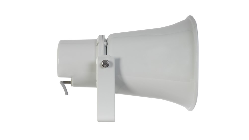 Lågimpedans hornhögtalare. Förberedd för utomhusbruk med rostskyddsmaterial. Skydd mot vatten. För långdistansuppspelning av meddelanden. |