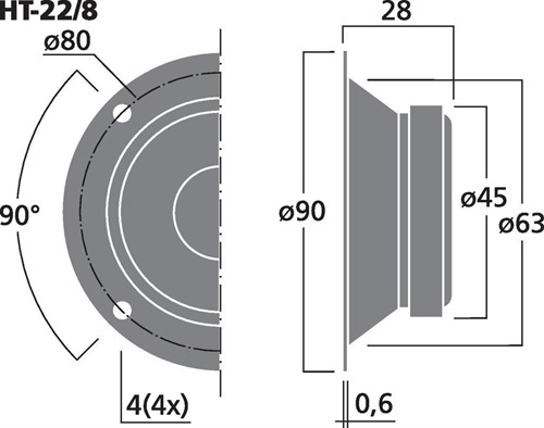 Cone tweeter, 20WMAX, 8 ohm Classic tweeter for universal applications in HiFi, car HiFi and for replacement purposes.