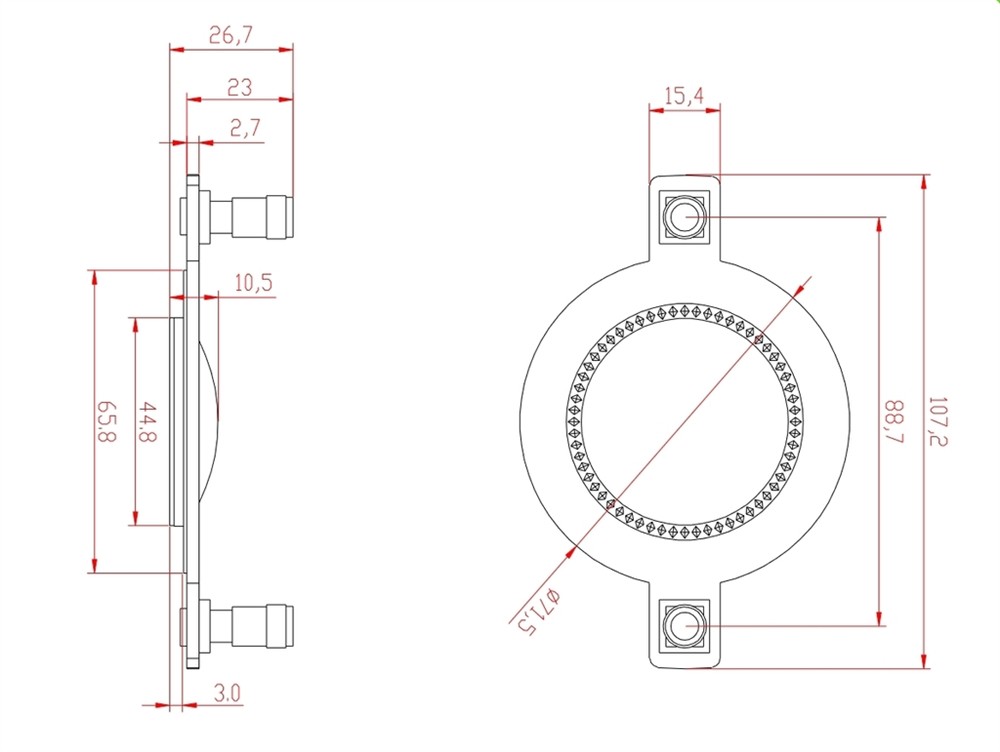 Dimensions: Ø 44.8 mm (outside diameter of voice coil)
