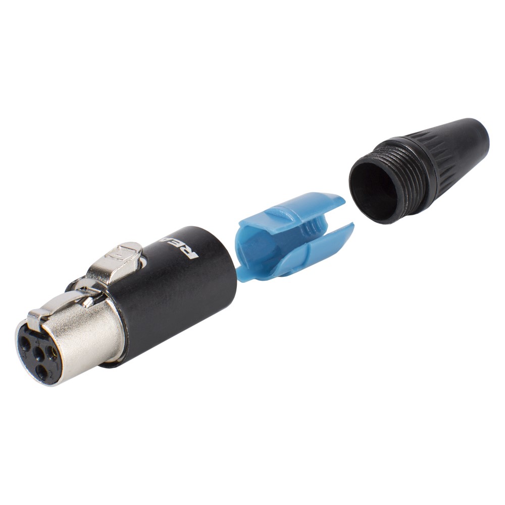 REAN Mini-XLR, 4-pole , metal-, Soldering-female connector, gold plated contact(s), straight, black