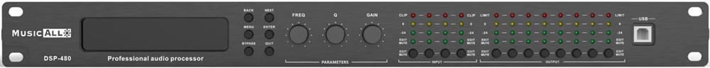 Nätverksljudprocessor 4x in 8x out, med MusicAll dsp programvara.