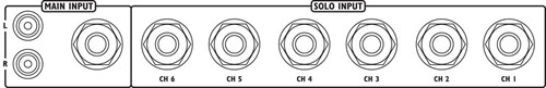 Inputs: solo (stereo) 6 x 6.3mm jack, main (stereo) 2 x 6.3mm jack, 2 x RCA L/R
