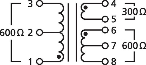 Audio transformer 1:1/2:1 for line signals - Unshielded version with print connections