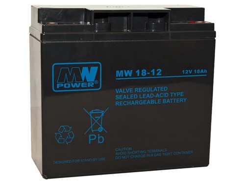 12V DC, 18 Ah, 6-9 år, 181x76x167mm
