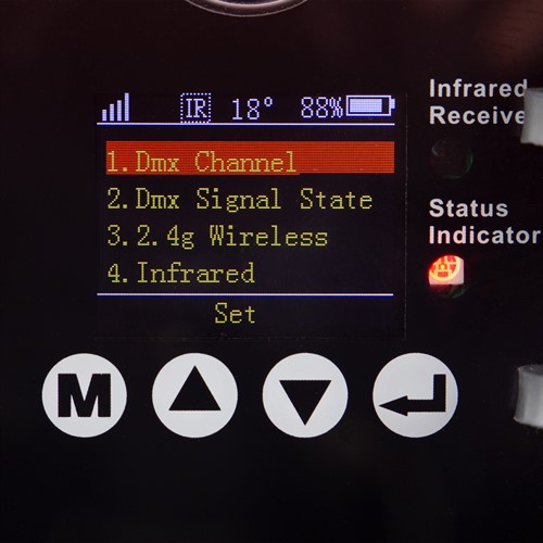 • Utrustad med en Widmx trådlös DMX-mottagare