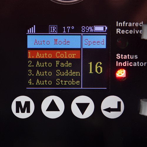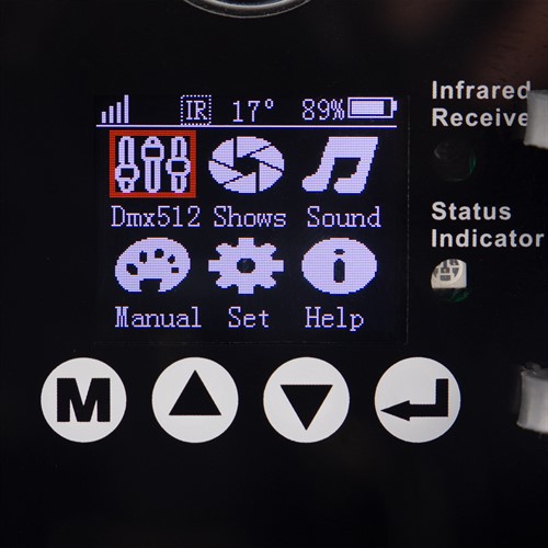 • 7 kontrolllägen: trådbunden DMX, trådlös DMX, Auto, ljuddetektion, medföljande fjärrkontroll, manuell, via iOS/Android WiFi-applikation