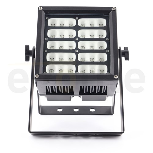 Resultatet är en imponerande och bred ljusspridning – perfekt för att lysa upp fasader, byggnader, eventytor eller inomhusmiljöer där du vill skapa en stark visuell effekt.