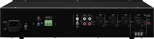 | Connections | 4 x XLR (mic/line), 1 x RCA L/R (aux), screw terminals (speakers) |