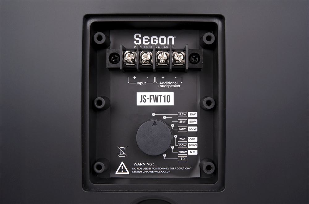 JS-FWT10B kan enkelt användas både med 100V-linje och 8 Ω lågimpedanssystem, vilket gör den flexibel för olika typer av installationer.