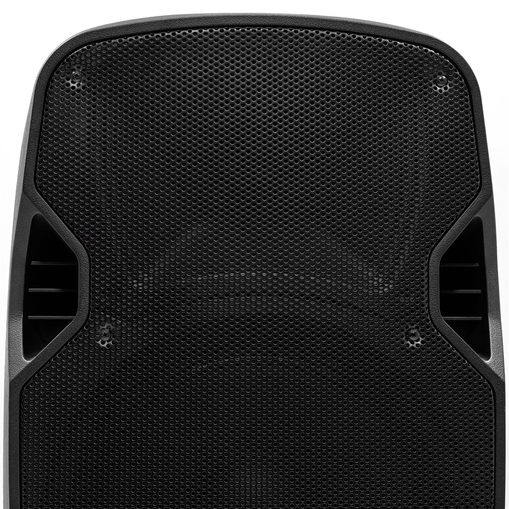 Högtalarens 2-bands equalizer ger extra kontroll över ljudet, vilket gör det möjligt att justera bas och diskant efter användarens preferenser. XLR-mikrofoningångar, XLR/RCA-linjeingång eller 3,5 mm mini-jack-ingång och en XLR-linjeutgång ger flexibel anslutning, vilket gör högtalaren kompatibel med en mängd olika ljudutrustningar.