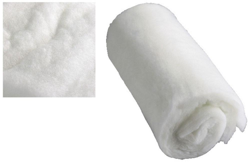 Särskilt dämpningsmaterial, vit, 100% homogen polyesterfiber, flexibel men med hög draghållfasthet.