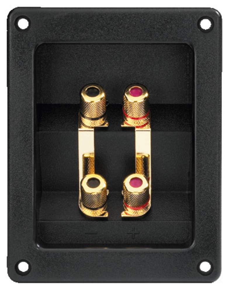 Högtalarterminal, för bi-wiring/bi-pairing.