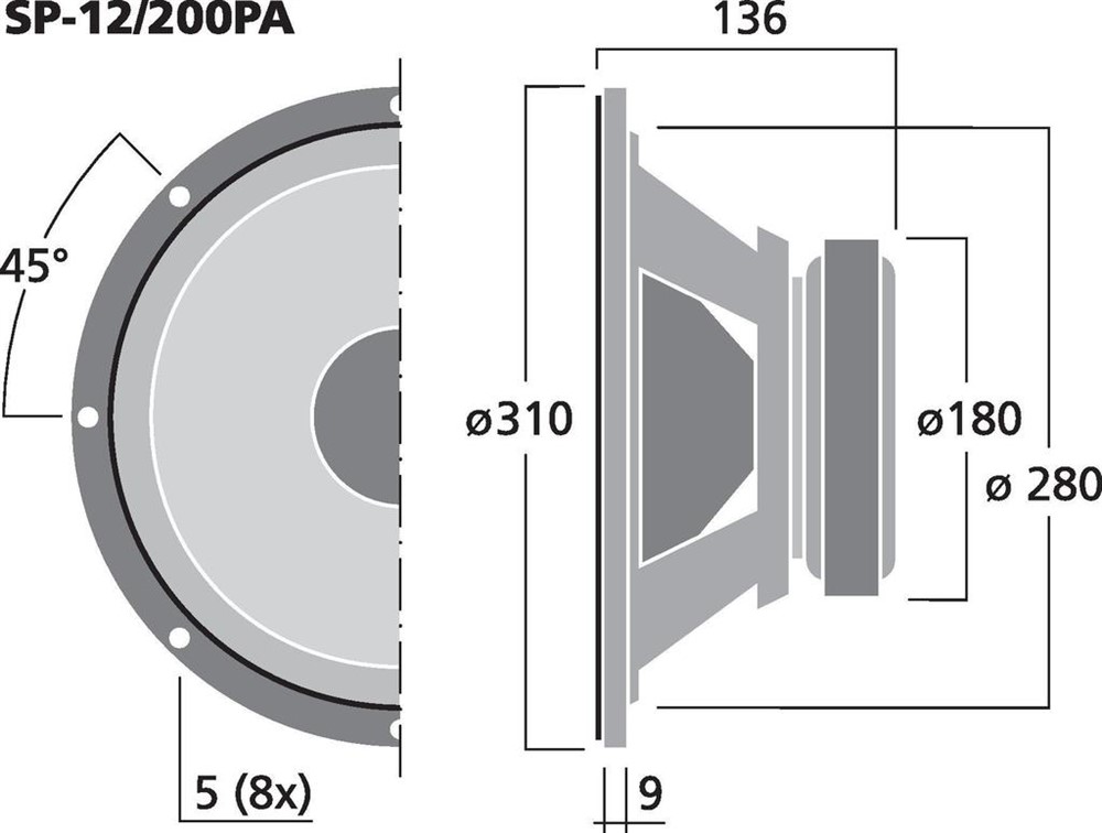 PA bass-midrange speaker, 400 WMAX, 200 WRMS, 8 Ohm