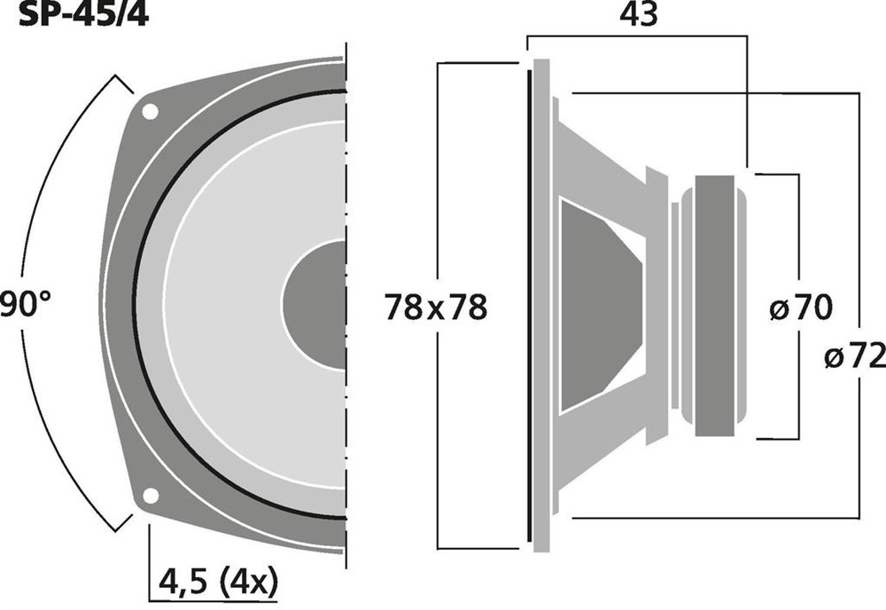 Bass-midrange speakers, 40 WMAX, 20 WRMS, 8 Ohm (/8) and 4 Ohm (/4) Especially suitable for miniature speaker systems and column speakers.