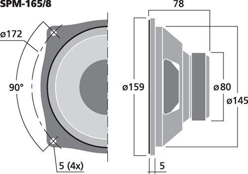 Hi-fi bass-midrange speaker, 150 WMAX, 60 WRMS, 8 Ohm