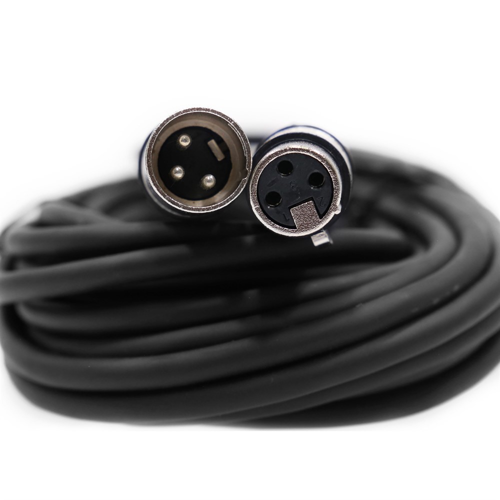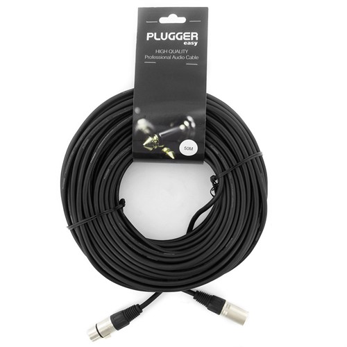 50 meter lång XLR-kabel med 3-polig hona till 3-polig hane. Kabeln har en ytterdiameter på 6 mm och är designad för att säkerställa högkvalitativ signalöverföring. Denna typ av kabel används ofta för att ansluta mikrofoner eller annan ljudutrustning som kräver balanserade XLR-anslutningar.
