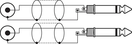 2 x RCA plug to 2 x 6.3 mm mono plug