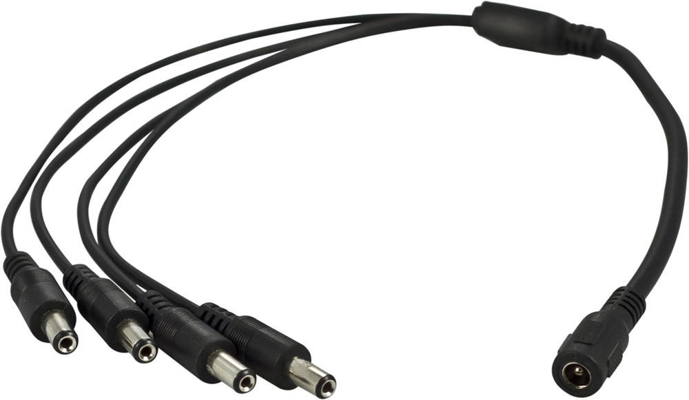 5,5 x 2,1mm 12V DC (fe) till fyra 12V DC (ma), 0,4m, svart