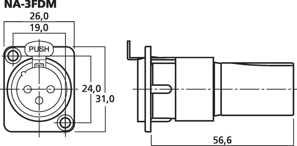 NA-3MDF: feed-through direction: XLR plug/XLR jack