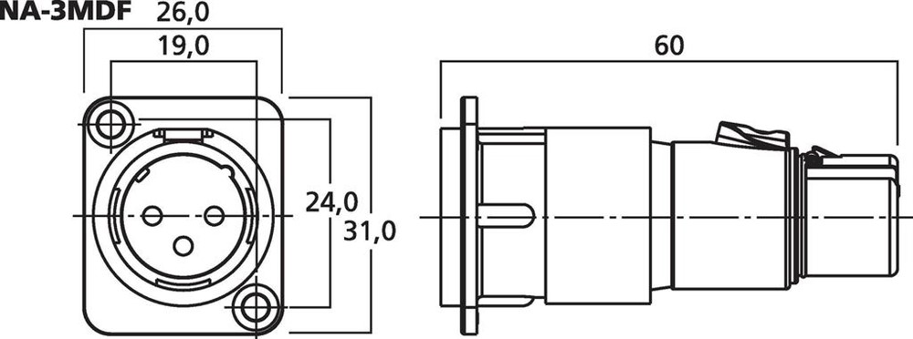NA-3MDF: feed-through direction: XLR plug/XLR jack