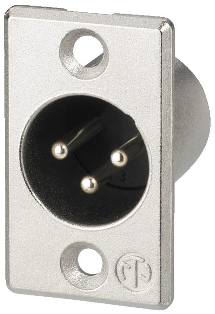 NEUTRIK XLR panel connectors, 3 poles, with nickel-plated contacts, solder lugs, P series standard.