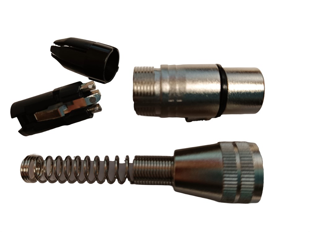 3-stifts hona XLR-kontakt med nickelplätering och anti-vridfjäder.