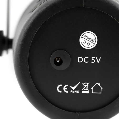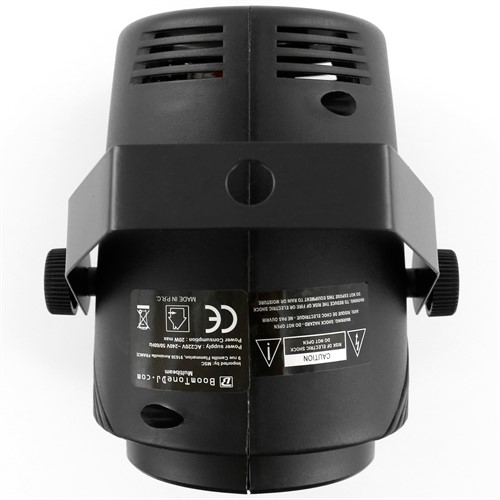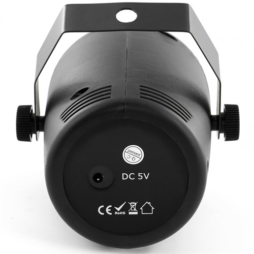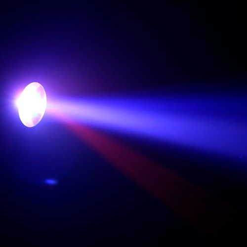 Den är utrustad med fem högintensiva 3W RGBWA-lysdioder (röd, grön, blå, vit och amber) som skapar dynamiska ljusmönster.