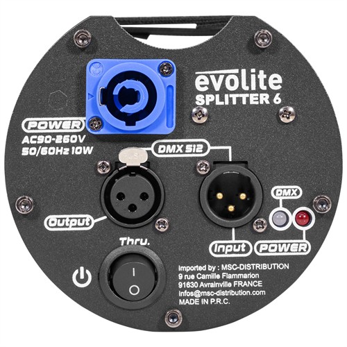 Evolite Splitter 6 är en praktisk DMX-splitter för att distribuera en ren signal till sex zoner. Inbyggd förstärkning . En enkel lösning för att organisera DJ- eller eventbelysning.