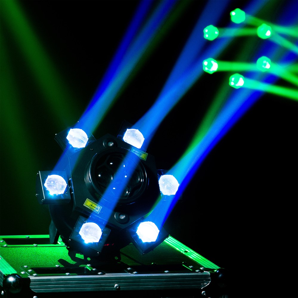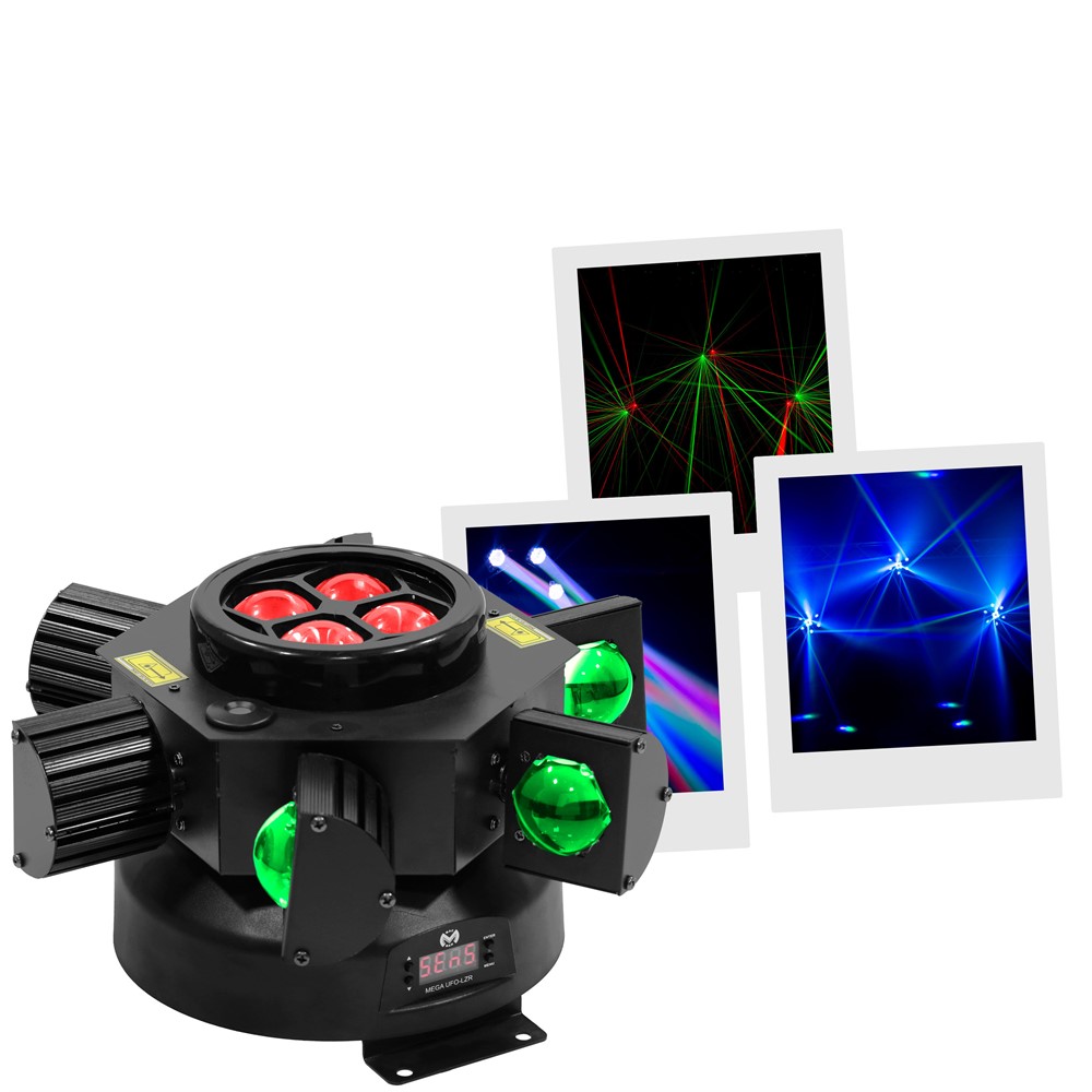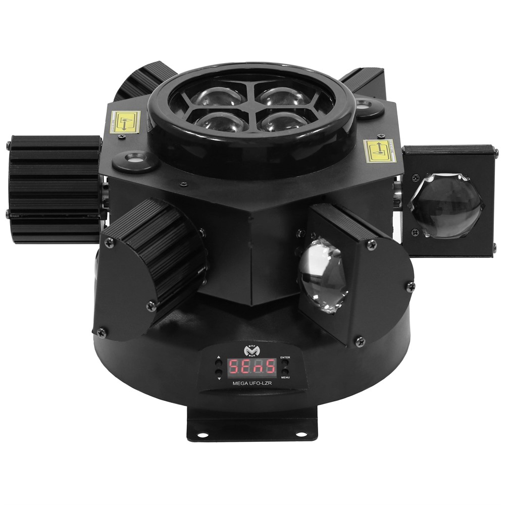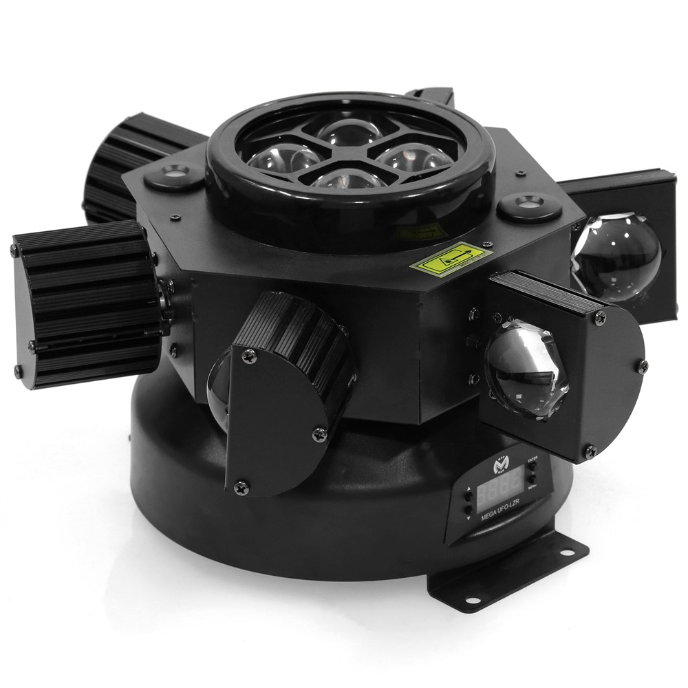 Mac Mah Mega UFO-LZR 3-effekts LED-ljusset: Beam, Honeycomb "Bee" och Multi-point LASER! Perfekt för klubbar, mobila DJ:s, hemmafester, balsal, etc.