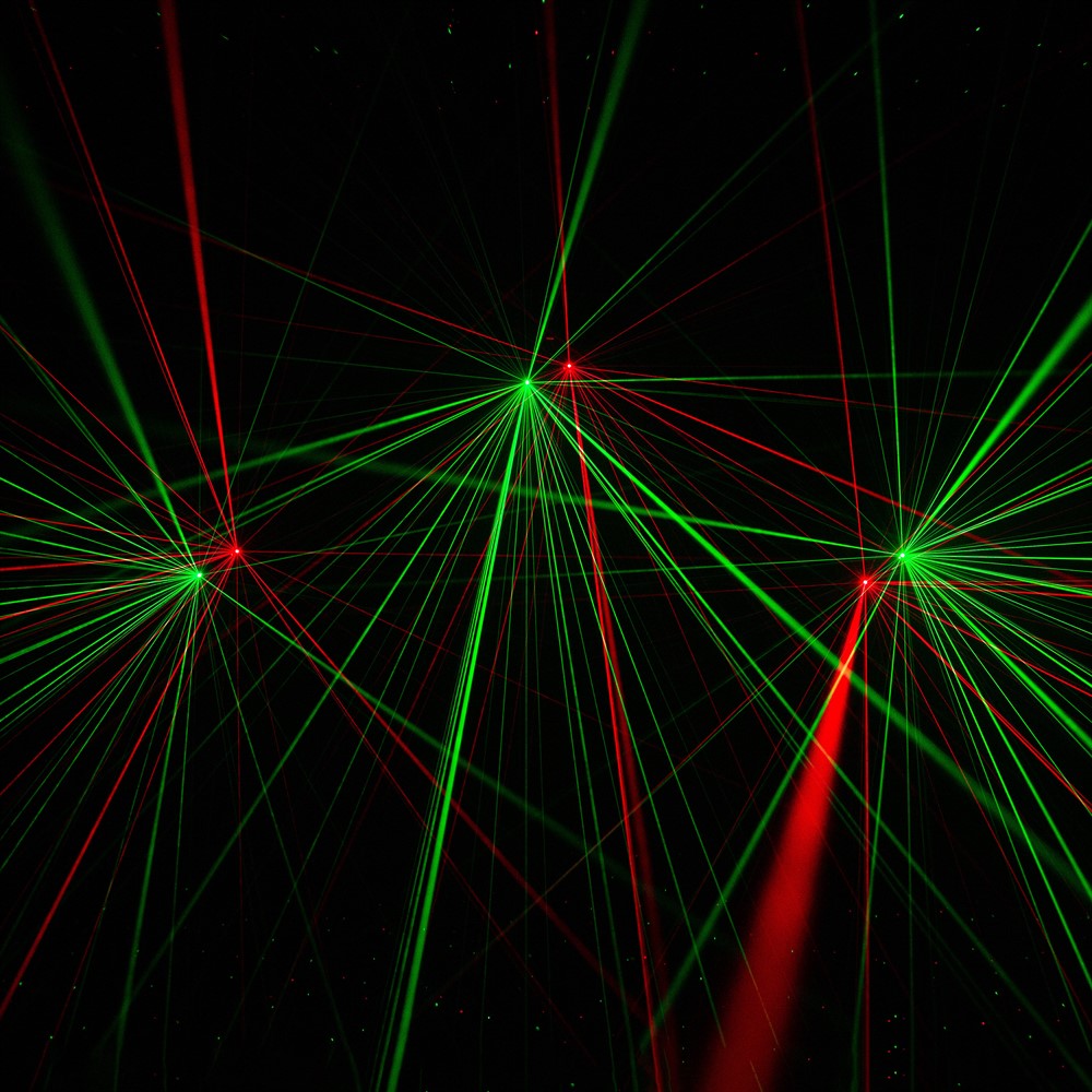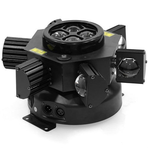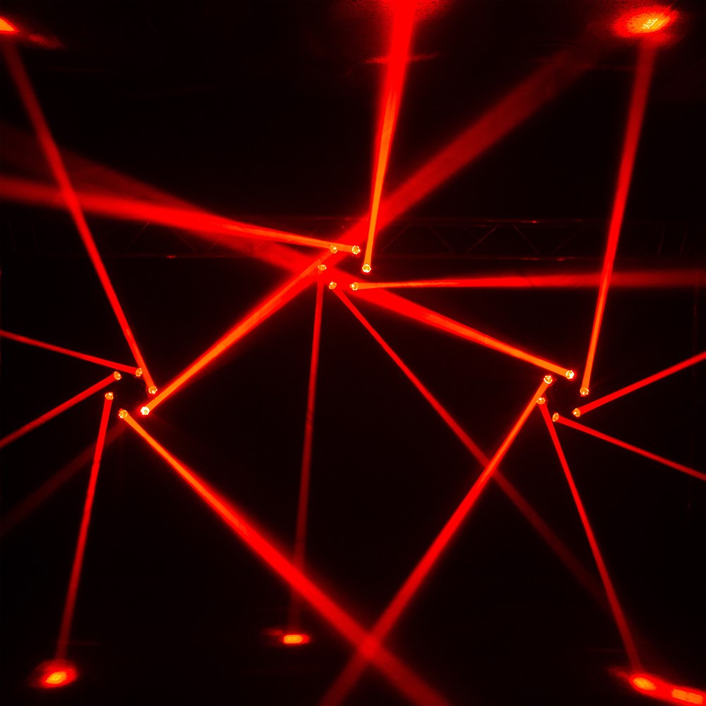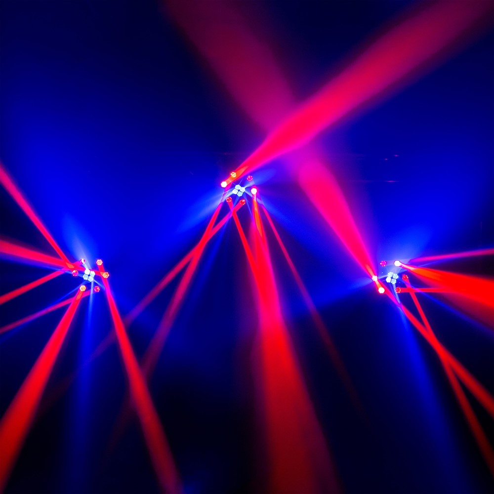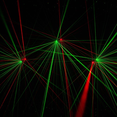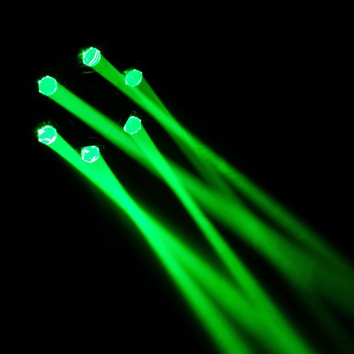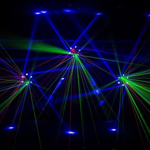 - Motoriserade och roterande flerfärgade strålar Strålar röd, grön, blå och vit