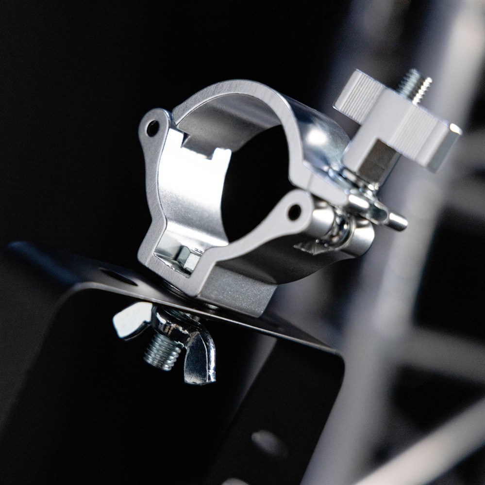 Klämman är framtagen för att spara tid och gör det lika smidigt att rigga tillfälliga uppsättningar på konserter eller festivaler som att göra permanenta installationer i klubbar eller konsertlokaler.