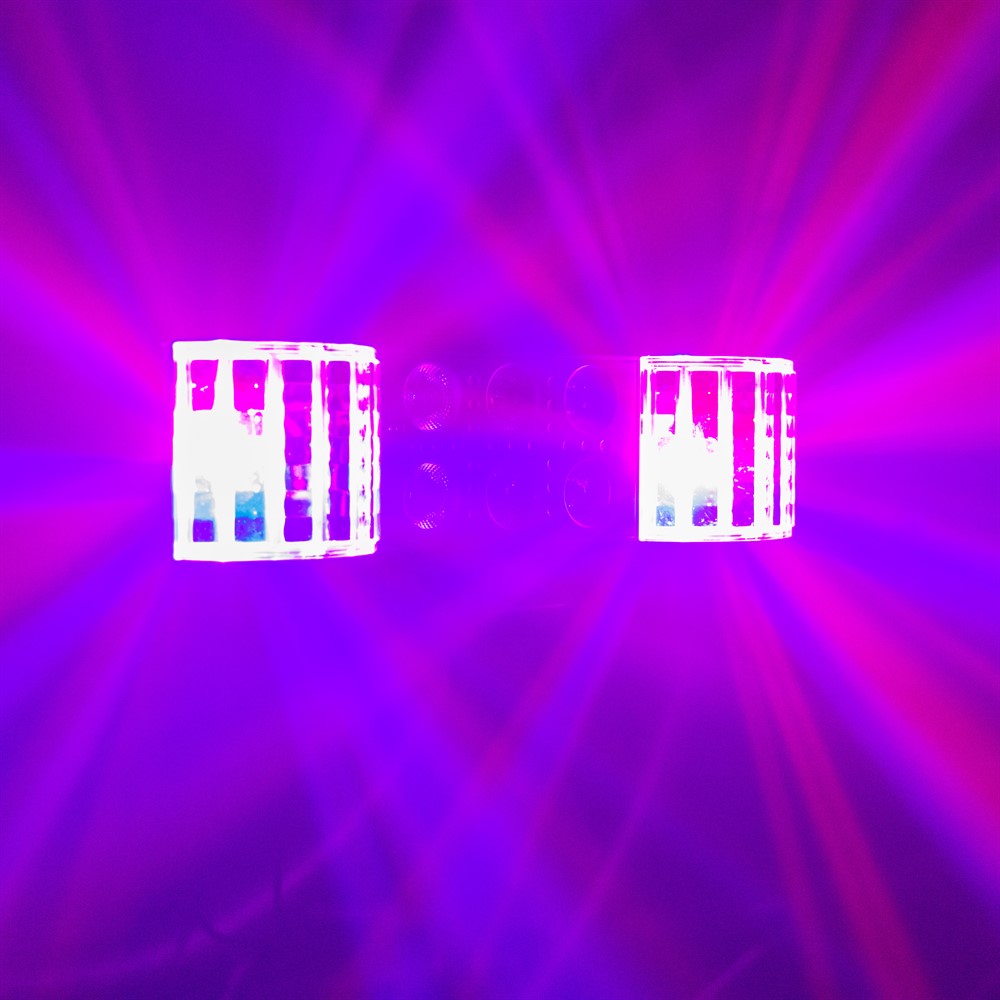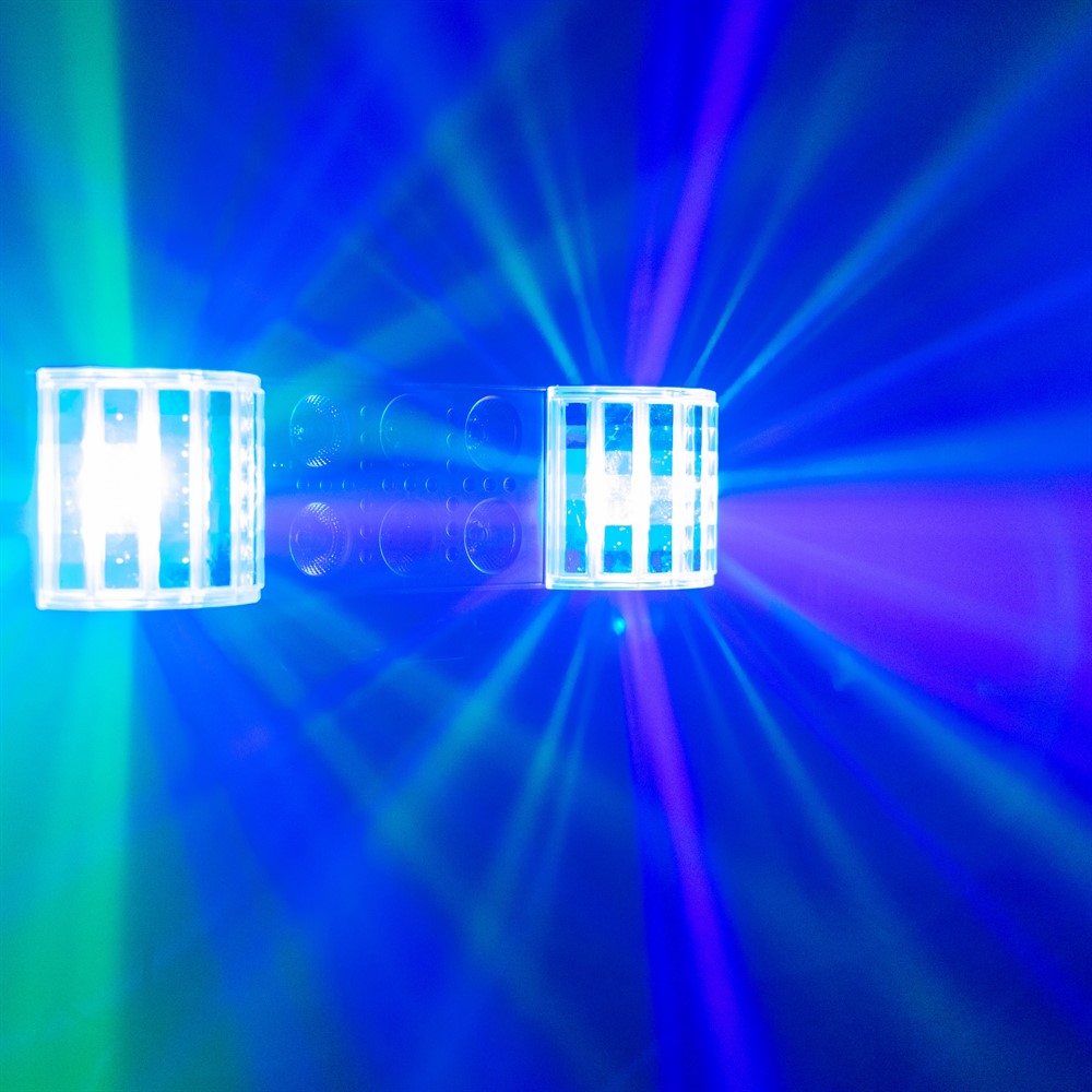 Twin Derby är ett mångsidigt 3-i-1 ljusset, perfekt för att liva upp evenemang, fester eller DJ-framträdanden.