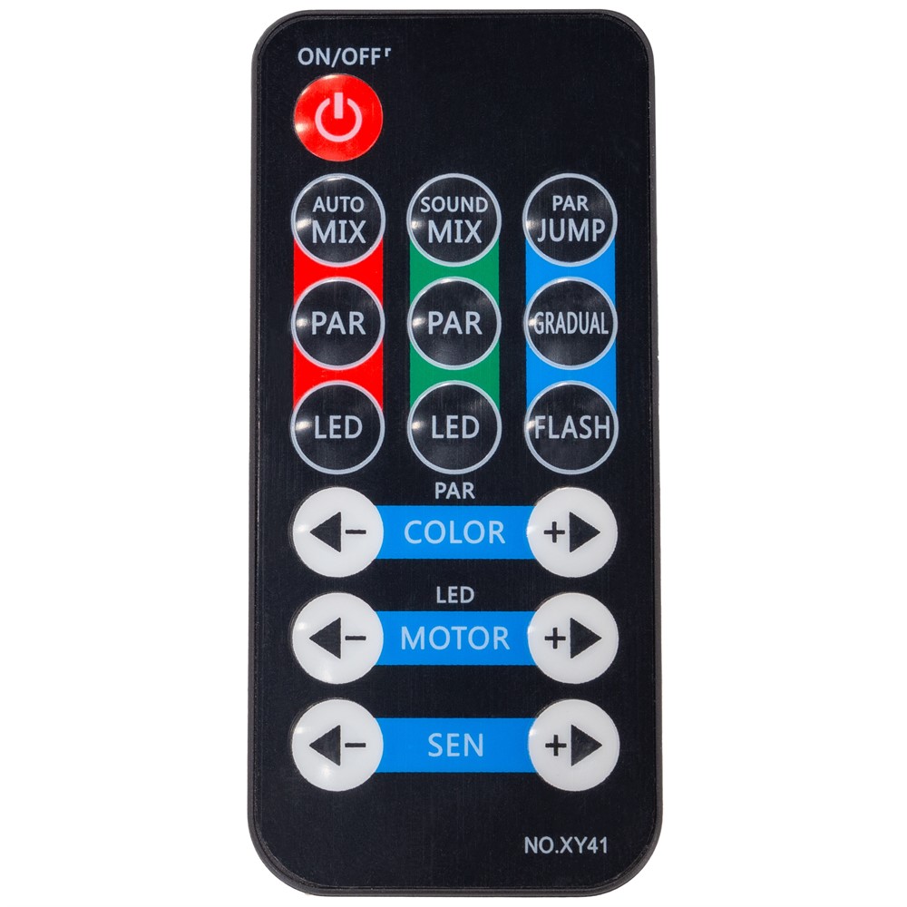 Den medföljande fjärrkontrollen möjliggör enkel hantering av effekterna på avstånd, utan behov av en DMX-kontroller.