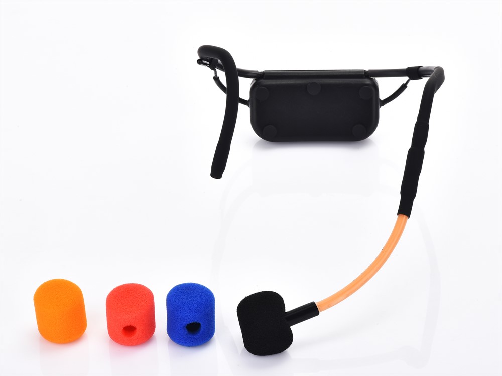 Sändaren sitter på headsetet i nacken och sitter bekvämt och bra.