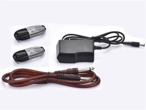 Det medföljer separat nätdel, kabel och laddnings kontakt.