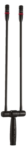 These double microphones are always the first choice when a high operating reliability, flexible positioning, increased sensitivity and an easy installation are required. The rigid goosenecks allow for a vertical adjustment of 160°, independent of each other. The audio signal is balanced and fed through a common 3-pole XLR plug. Professional features are integrated, e.g. switchable 10 dB attenuator and low cut filter. The high-quality back electret supercardioid cartridges feature a +48 V phantom power supply.