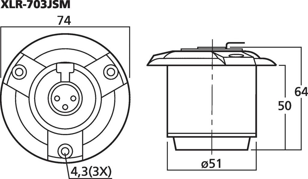 Attenuation of impact noise and structure-borne noise due to rubber-cushioned 3-pole XLR socket