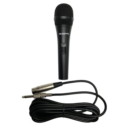 Formgjuten metallkropp med på/av-knapp och 5 m XLR - 6,35 mm jackkabel ingår