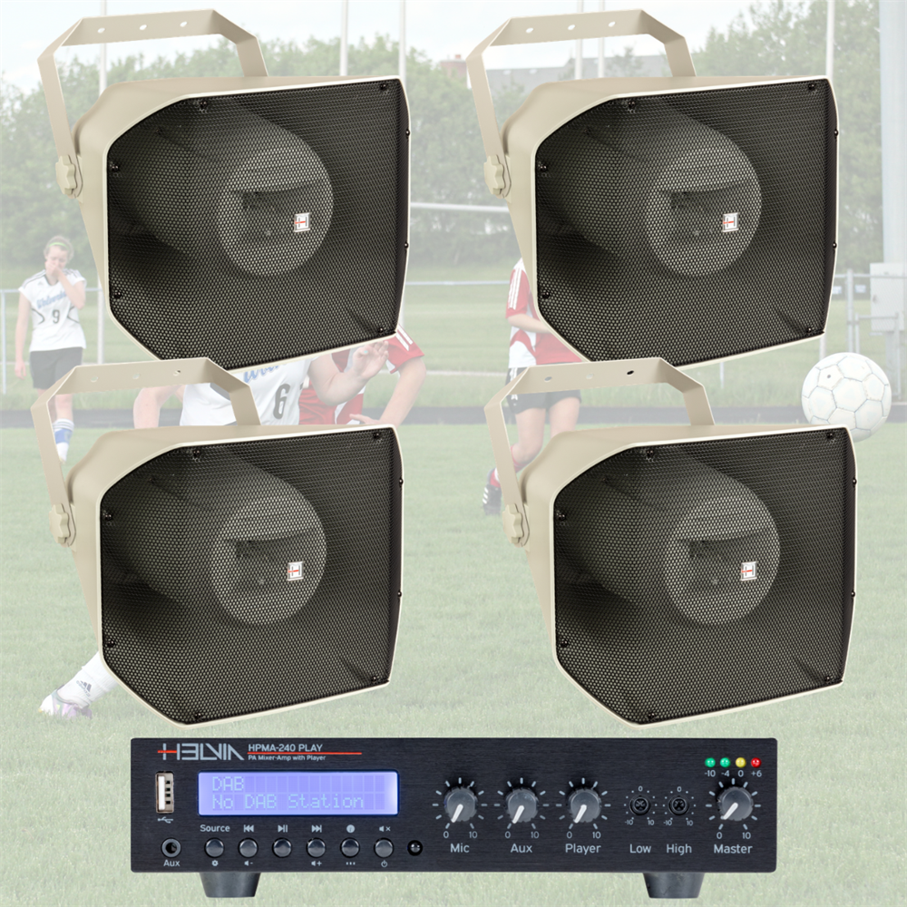 Det gör paketet till ett mycket bra val för fotbollsplaner, idrottsanläggningar, träningsytor och klubbmiljöer där ljudet behöver vara både kraftfullt, klart och driftsäkert i vardagen.