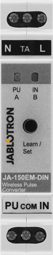 JA-150EM-DIN är avsedd att monteras på DIN-skena och används för att avläsa och trådlöst förmedla information från byggnadens elmätare med pulsutgång till centralenheten. Kan avläsas och följas i MyJablotron, Webb Självbetjäning.