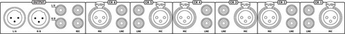| Mic input | 1 mV/6.6 kO, 6 x 3-pole XLR, bal. |