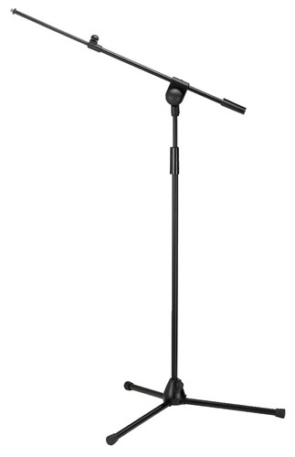 Golvstativ till mikrofon, med rörlig arm med justerbar längd och stötdämpande vikbara fötter. Gänga: 16mm (5/8") och 9mm (3/8").