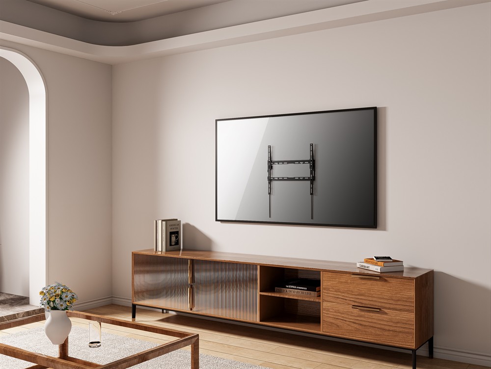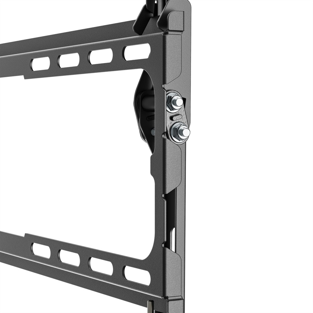 - Integrerat säkerhetssystem: Säkerhetsskruvar säkerställer att TV:n är ordentligt fäst i fästet och förhindrar oavsiktlig förskjutning.