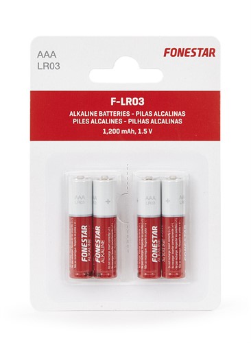 Blisterförpackning med 4 alkaliska batterier.